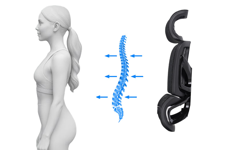 Повторяет форму позвоночника адаптируясь под естественные изгибы, обеспечивая поддержку в ключевых зонах, стабилизируя осанку и снижая нагрузку, даже при длительном сидении